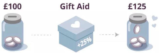 The charity or CASC can claim an extra 25p for every £1 you donate. That’s as long as you’ve paid the basic rate of tax and make the donation from your own funds. That means Gift Aid can increase the value of your donations by 25%, so you can help the charity do extra work at no extra costs to you.